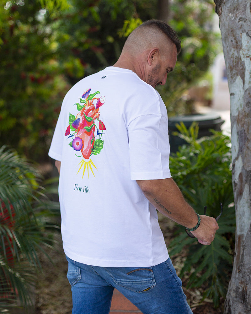 Porté en duo, ce t-shirt devient un véritable lien entre les personnes, peu importe leur morphologie ou leur style.